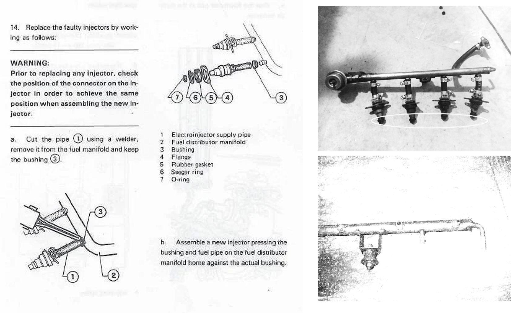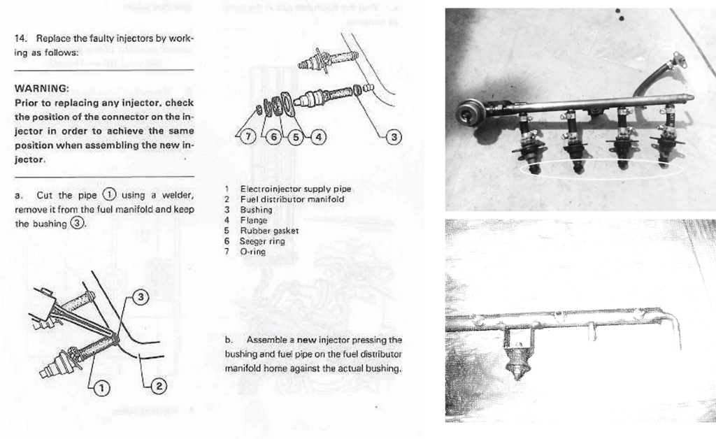 The rail is fastened at the middle base using a rubber mount. To get this off you have to get at the bottom nut from underneath the car. You will likely find this mount is in rough shape and you might as well order up a new one. You can then removed the injector rail with the hoses, injectors and their hoses, and rubber mount as one piece. I lost my camera with my photos of the rail – so grabbed pictures off the web in places like – https://www.alfabb.com/threads/87-spider-injector-rail-hose-replacement.44099/page-2 – and put them together below.