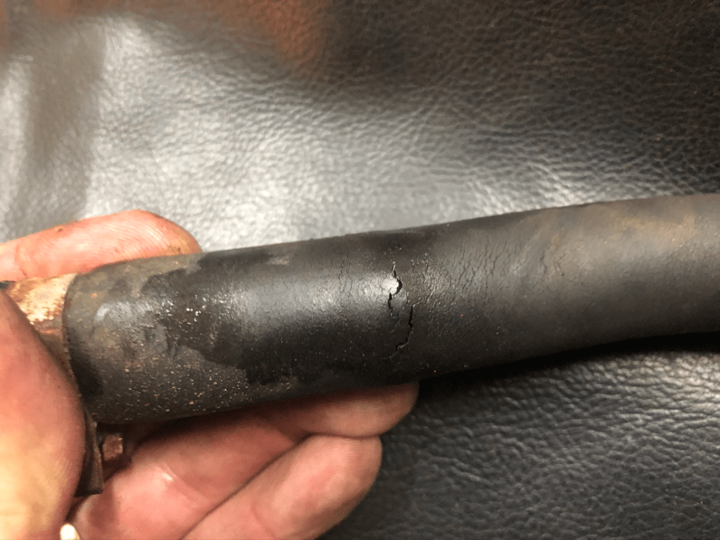 Removing the MGA heater box is pretty straight forward. The heater core, blower fan and air inlet and outlet ports are all one big assembly. There are only two water hoses connecting the unit to the engine. So I drained the radiator and commenced removing the heater hoses. These were in bad shape and certainly had to be discarded.