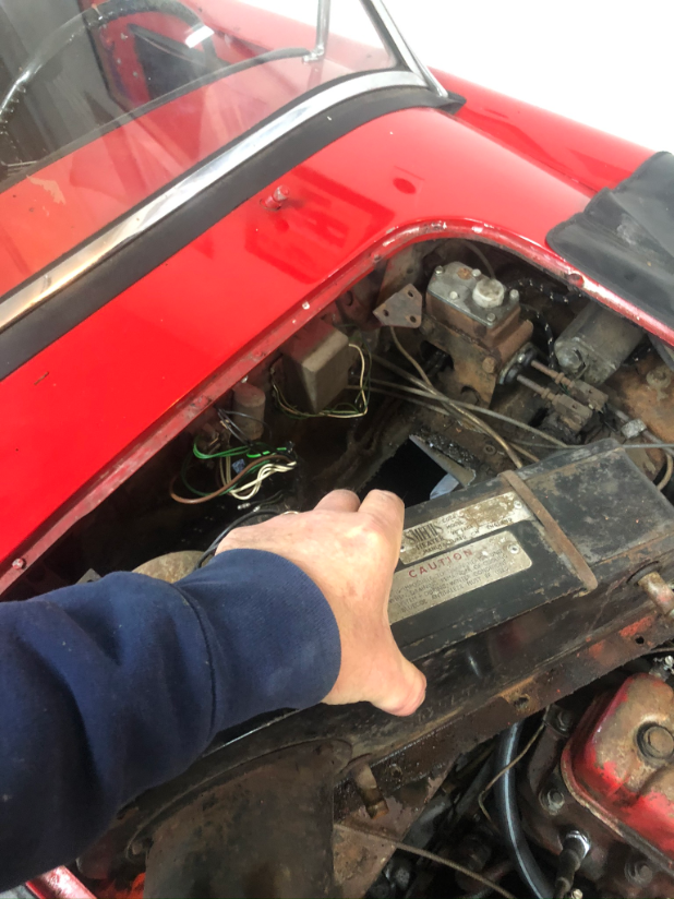 Once I decided to go all out and tackle not just mechanical restoration of the MGA, but correctly painting the engine compartment etc. it was time to start disassembly. I knew I would likely be replacing all the soft lines and hoses and many other parts of the car. However, I also had to clear out almost everything in the engine compartment in order to strip and paint it the correct color. In addition, having that all cleared would make installing the new wiring harness easier.